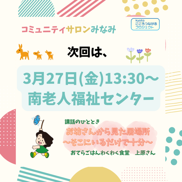 次回はお寺のご住職であり、子ども食堂の活動もされている上原さんより、あたたかくてタメになるお話をしていただきます✨